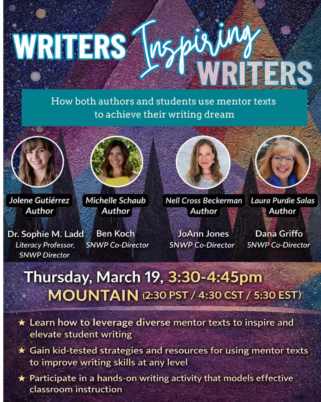 /Educators and kidlit writers, don't miss this FREE webinar! I'm once again teaming up with this amazing group of children's book authors (Jolene Guitiérrez, Nell Cross Beckerman, and Laura Purdie Salas) and the Southern Nevada Writing Project team to share our process of using mentor texts to inspire our own writing and the writing of students! Sign up HERE!